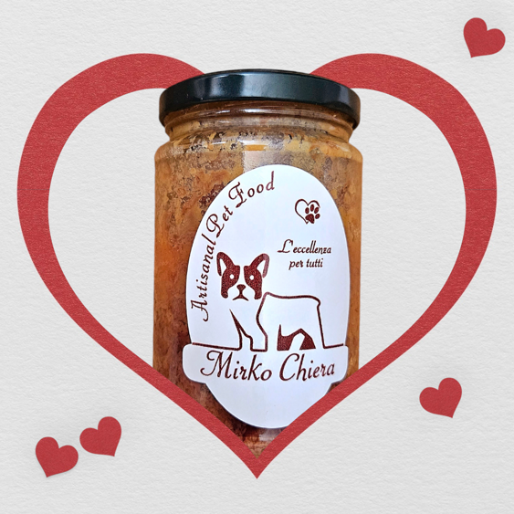 "Dietro ogni prodotto MirkoChiera Petfood c'è una storia di passione e dedizione. Crediamo nel valore dell'artigianalità: ogni fase della produzione è seguita con attenzione, proprio come farebbe un cuoco nella sua cucina. Selezioniamo le migliori materie prime e le trasformiamo in un pasto completo, sano e delizioso che rispetta la natura del tuo amico a 4 zampe!."